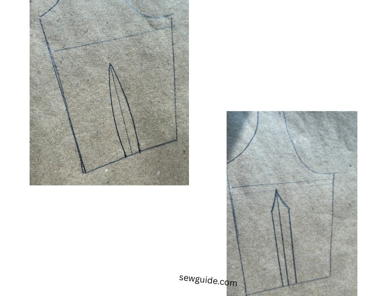 Length of the front fish dart : Upper part of the dart – stop 1 or 2 inches below the bust point. And for back, you can extend up till the shoulder blade. Under the waist line : You can give 2 to 4 inches length under the waistline for the front fish dart and for back fish dart this can be 3 to 5 inches