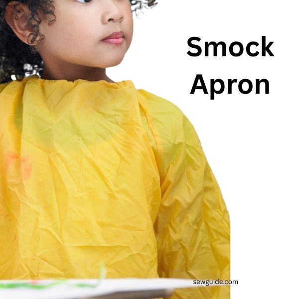 A cobbler apron covers your back and front – full coverage for your clothes. This is an apron that looks like a top but with a big enough neck opening so that you can slip it over the neck to wear it over your regular clothing. When you wear this kind of apron your back is also protected. It is a good covering for your clothes if you are working where your clothing can get dirty all over.