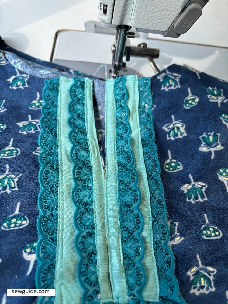Trims are what makes sewing fun. Buy them in your favouorite colors or the bling-est one and you can change the look of any clothing. In this tutorial, I’ll show you two easy ways to stitch trims onto tunic top necklines – not exactly on the neckline, but surely in a way to make the neckline pretty.
