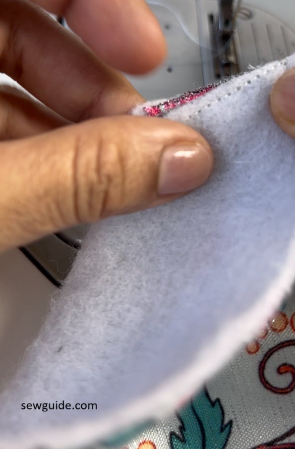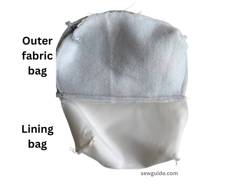 Sew around the whole perimeter, leaving a 2–3 inch opening at the bottom of the lining.