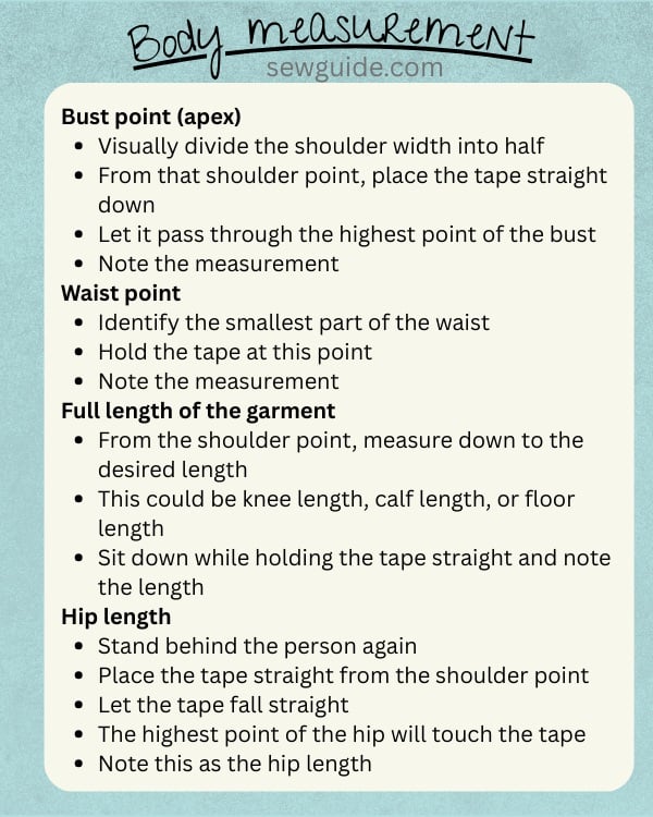 Measurements to be taken for making dresses