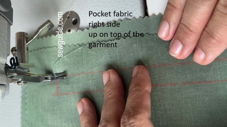 Step 2. Keep the pocket fabric right side down on the garment face up (or lining of the bag face up)