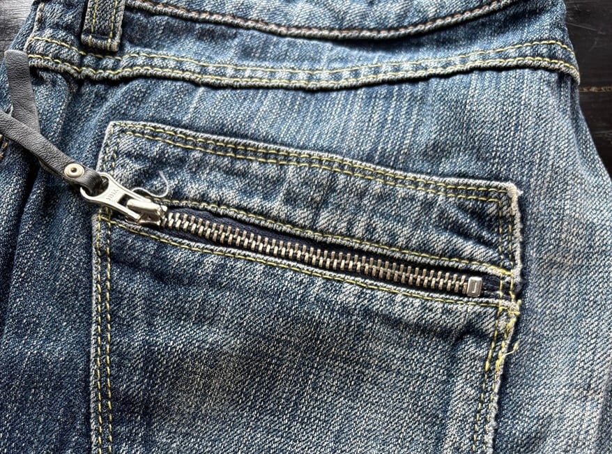 In this pocket, the zipper is visible from the outside. I have seen this pocket mostly on jeans as coin pockets with zips and also as decorative or utility pockets on cargo or fashion denim. And on bags.