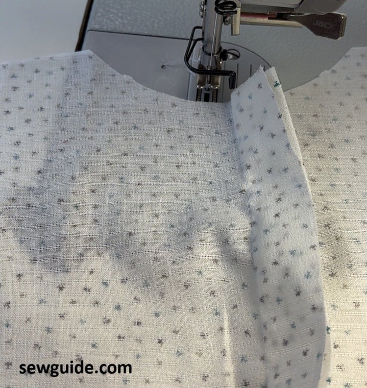 Keep the bodice back side up. Isolate seam allowance to one side. Use your regular presser foot for this.