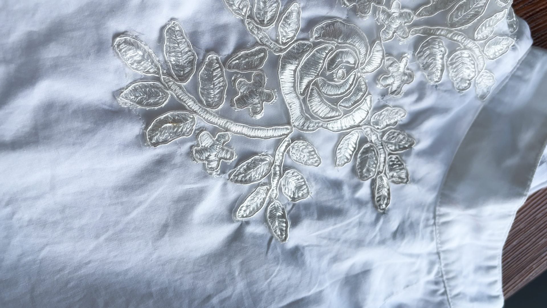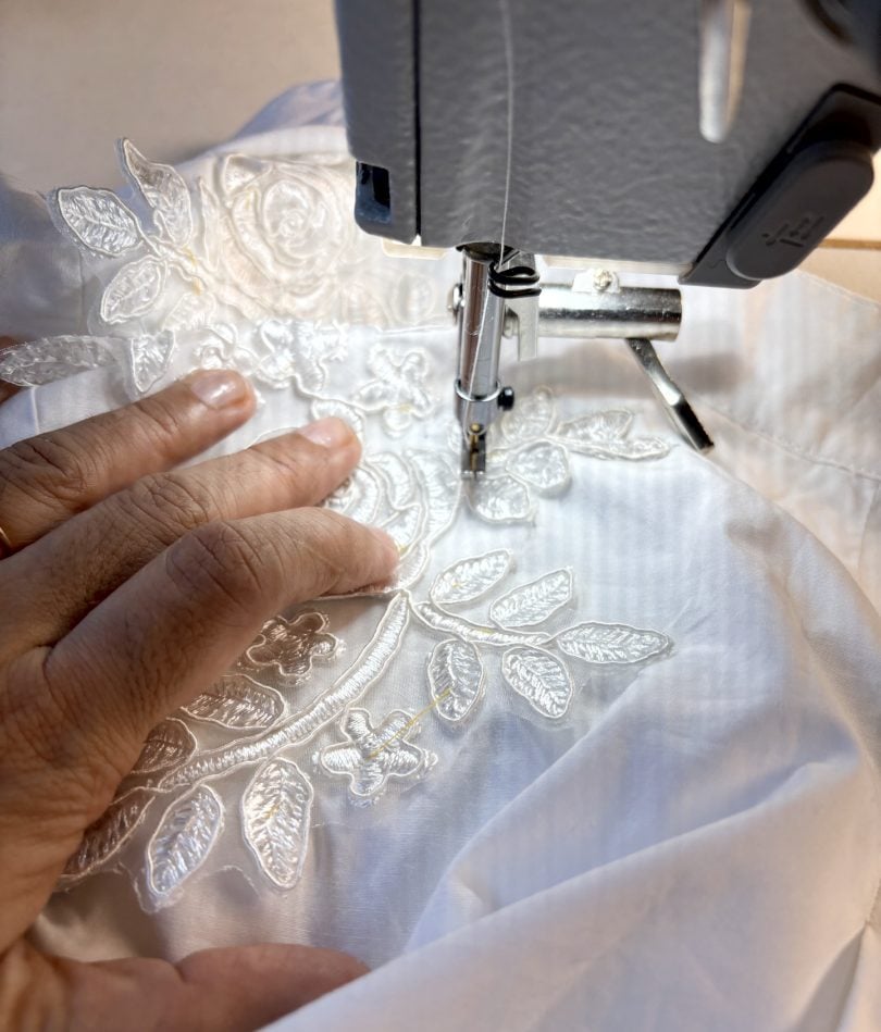 - Stitch the applique with a rayon or polyester thread – I would hand sew with very small (the smallest of all) stitches.