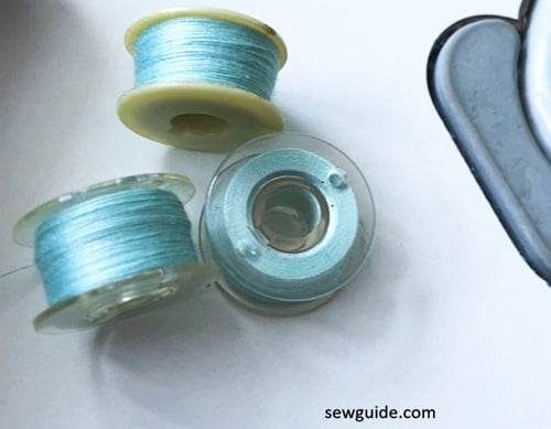 The bobbin is kept in a specific direction – it will be indicated on the machine or demonstrated in the manual- and the thread tail has to be inserted through a slit on the case – if this is not done right, the whole thing will be a mess afterward.