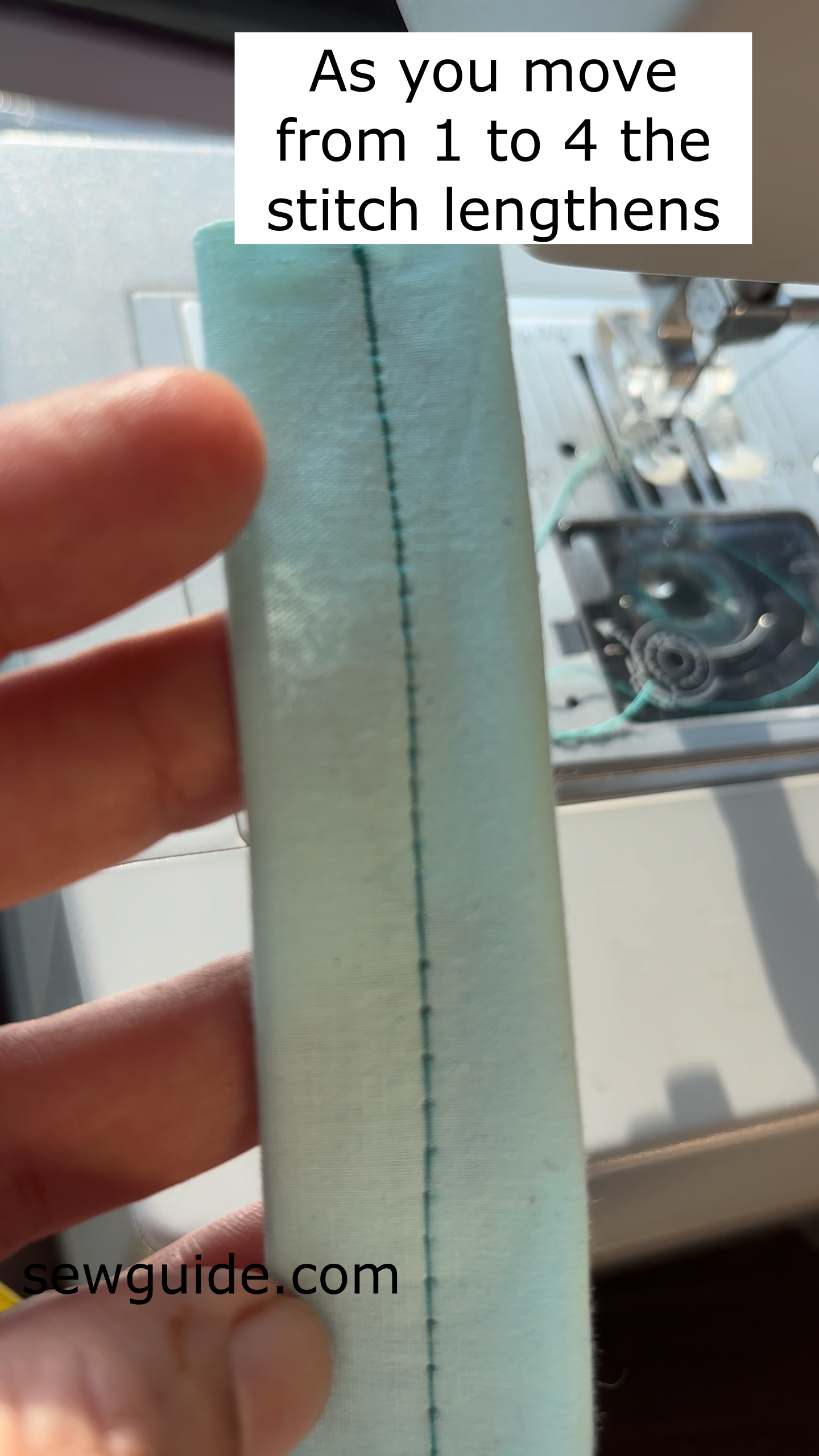 Longer stitches for thick fabric; Short stitches for curves and control ; 0 for anchoring