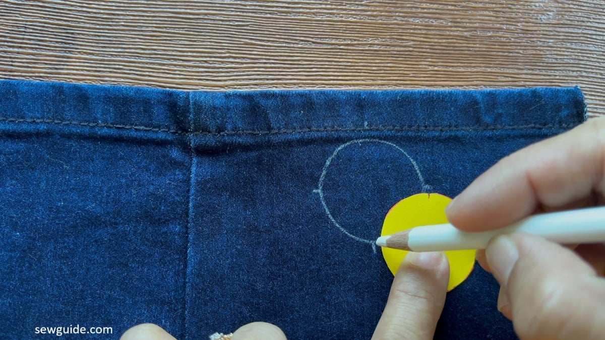 Start tracing the circle shape around the template with a marking tool of your choice. I am using a marking pencil. A water erasable marker is the best for embroidery.