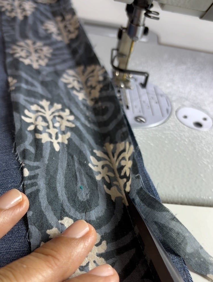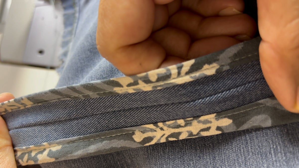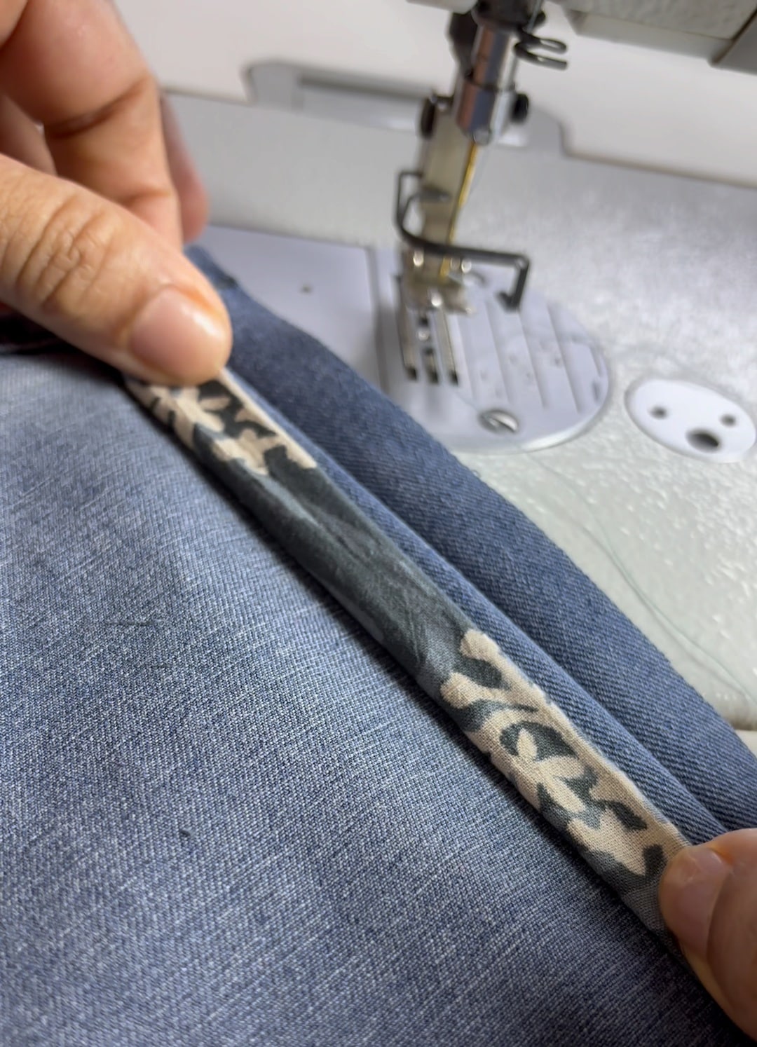 When you sew a bound seam edge, you will be joining the couturers of the world – they always finish their inside seam edges with a bound finish like this. You will be using the bias binding tape to bind the edges. A bound edge makes thick fabrics feel smooth,and soft. Perfect for denim, canvas, or heavy cotton.