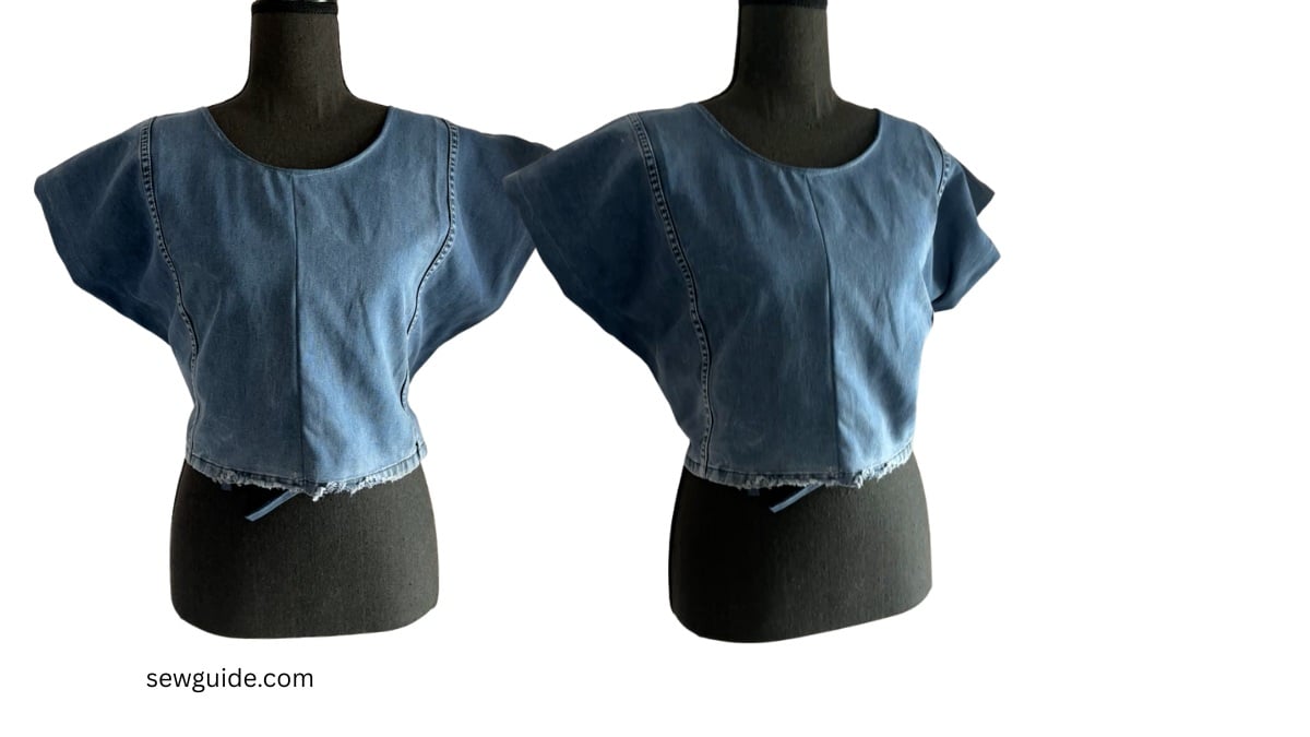 For making this top, one jeans is enough – so long as it is not a slimfit one- better to get a wide leg jeans to get enough width. It basically a wrap top with wide batwing sleeves.